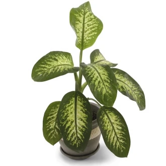 - The plants all mimic real indoor house plants. Looking at the image in the gallery, from left to right, the plants are likely a genus of Dieffenbachia seguine (Dumbcane), Zamioculcas (ZZ plant), Dracaena trifasciata (Snake Plant), Fern, Yucca (Spineless Yucca), and Hoya (Wax Plant).